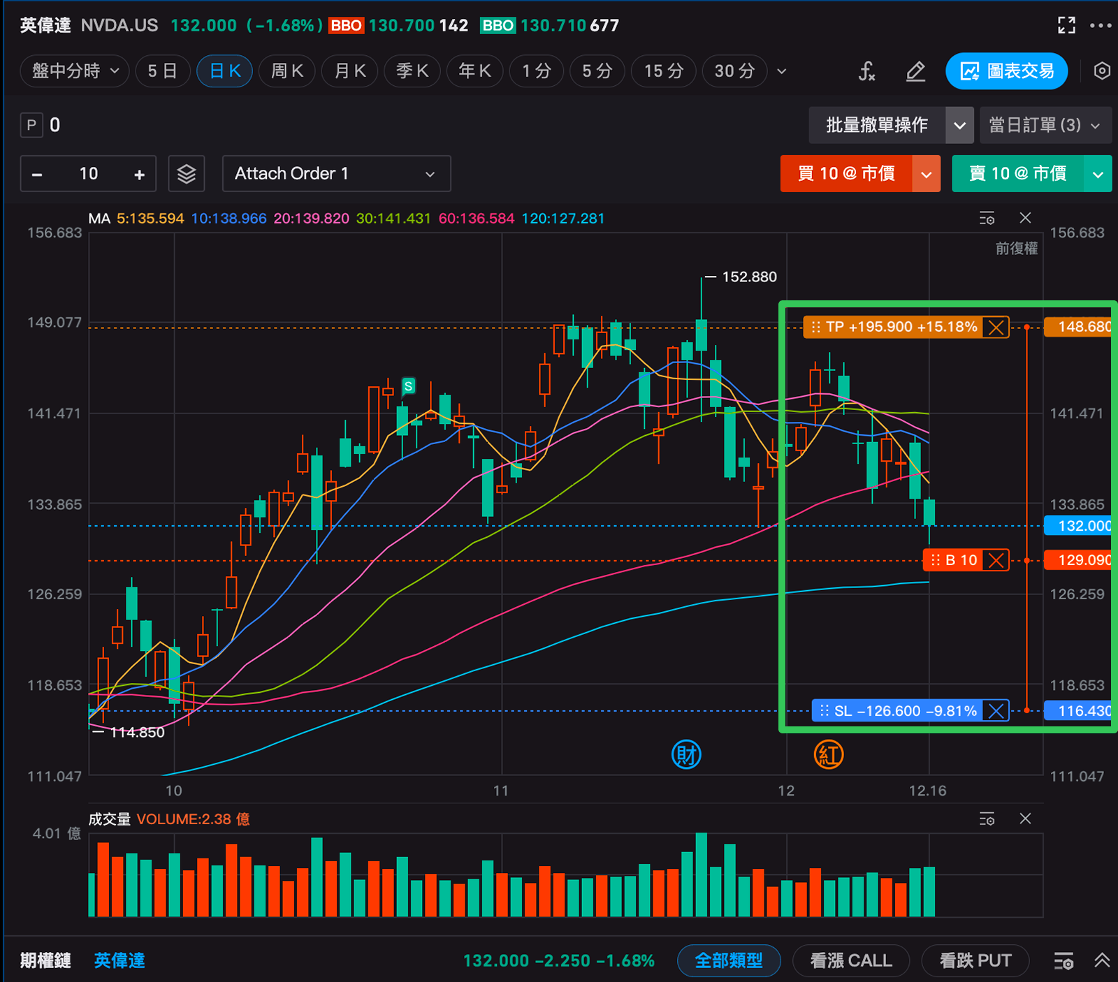 當股票價格為 100 元時,點擊買入委託,並包含附加單的話,那麼會同時產生 3 筆訂單: