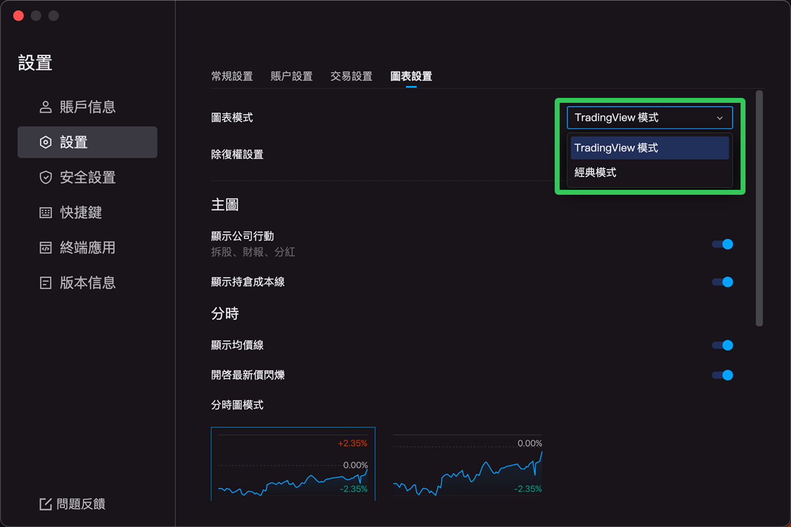 (1)若您設置的是 Trading View 模式的圖表,則圖表中無法直接查看到附加單委託線,建議切換到經典模式圖表。切換入口:設置 - 圖表設置 - 圖表模式切換。